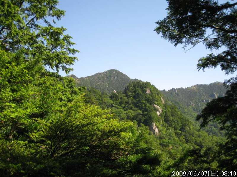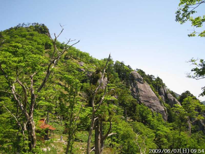 | 釈迦ヶ岳へは過去2度登っテイルが何れも旭からの登山。今回は前鬼から登ることに! 昨年(2008年)の 7月に前鬼から深仙の宿と大日岳までは登ったが、そのときは釈迦ヶ岳は遥か遠い存在であった。 ガイドブックの案内によれば、車止めから4時間くらいの距離なのでギリギリ何とかなる距離ではある。 自分にとってはロングコースであるのと高度差が 1200mあるので大変厳しいところではあるが、一度途中までではあるが登った経験があるのと、ちょうどいい季節でありゆっくり登れば何とかなる。 ゆっくりと登れるように朝早く家を出発。 現地に7時前に到着した。時間はたっぷりあるので十分だ。 カーナビの案内は 08時頃 108kmと出たが実際は 1時間以上早く着くことが出来た。朝早いため車はほとんどなく前鬼口まではビュンビュン丸であった。 手前の駐車場所には既に6台ほど駐車していた。 体力温存の為、林道経由でゆっくりと出発。途中大日岳が見える場所があった。 前回は登山道経由で往ったので、違う発見である。 30分丁度で小仲房に到着。遥か遠くから犬に吼えられる。主人らしき人の姿も見える。 役行者が祀られている行者堂の写真を撮りそのまま、登山道に! まっすぐに行きそうな宿坊跡のところを消えそうな案内板を探し西方向へ(ここは前回気がつかなくまっすぐ行ってしまった)。後はテープ等を頼りに行けば迷うようなところはない。 1時間程度登ったところで大分前を行く人が人見え隠れする。 二子岩に到着すると、先行者1人と外人が話をしていた、当方も話に加わる。 外人さんは東京住まいで、今回吉野から 1泊でここまで来たとの事。途中弥山では嵐の為にまる1日中テントの中でじっとしていたとの事。今日は前鬼口まで歩き2時××分のバスに乗ると言っていた。この外人さんは行動力がすばらしい。 山の様子を色々聞いたら、日本にもこんな自然が残っておりすばらしいと言っていた。東京住まいの外人さんがここまで来るのはやはり熊野古道の世界遺産の知名度の為か。 二子岩の後ろに行き、これから行く釈迦ヶ岳や羅漢を見るが天気が良い為すばらしい景色だ。 元に戻ると先行者は出発し、逆に後から1人到着してきた。 先に出発し少しすると後ろから追いついてきた。暫く話をしながら歩く。栃木の人で車で寝泊りし明日・明後日と山上ヶ岳・八経ヶ岳・大台ケ原と登るそうだ。その後ペースが速く先に行かれた、この人とは帰路に寄った上北山温泉でも会った。 太古の辻に到着、前回気がつかなかった背比べ石の写真(案内板はない)を撮りそのまま出発。 ゆっくり登ってきたがそれでも大分早い、時間は十分・体力もマアマアである深仙の宿では小屋で泊まっていた人と話をする。 今朝は5時から晴天だったとの事、家を出たときは曇りあったが現地の天気とは大分違う、その人は糖尿のせいで目が悪くなり、暫く滞在するそうだ(少しすれば元に戻るとの事・食料もたっぷり持参しており本宮まで行くとの事) そこから300mの登りで案内書では 50分、そこもゆっくり登るが団体さん何組かとすれ違う。 少し急坂を登ったところで白ヤシオが見事に咲いていた。今日気がついた花はこの白ヤシオと更紗ドウダンの1本のみであった。 旭からの合流点まで来ると、良く来たなと思う、前鬼まで140分の表示があり、今までぞこを通過したときは前鬼から登れるとは思わなかった、感激ヒトシオである。 山頂は数組のグループが居ただけであった、釈迦如来像も新しくなっていた。前回来た時は釈迦如来像の身づくろい中で小さな陶器製の如来像が身変わりに置いてあり、前々回は古い釈迦如来像であった。 今日は天気は良く、山上ヶ岳まで見えた。少し早いが昼食とする、おなかの具合が変になりオニギリとパン1個を食べ残す。今日はペットボトル3<本持ってきたが、深仙の宿の水場(香精水)で1本補充、冷たくておいしい。 帰路に大日岳に登ろうかと思ったが、時間はたっぷりあったが、体力的にシンドクなってきたのし前回登ったことがあるのでパスする。後は二子岩で少し休み順調に下山 帰りに上北山温泉に入浴、500円、ボディーソープはあったがシャンプーは置いていなかった。 |