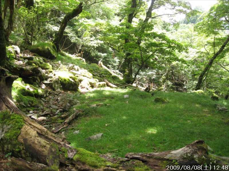| 登ってみたいと思っていた山であるが、未だ未踏の大普賢岳。 ガイドブックでは無双洞から大普賢山頂まで2時間45分とある。水太谷から登ればプラス30分の3時間15分。 標高差も 1000mくらいなので尾根道でアップダウンはあるが十分登れるはずだ。 大普賢岳は、今年4月に上谷から伯母谷覗経由で挑戦したが、雪と疲れのせいで途中撤退している。 ということで今回は水太谷からの挑戦 途中の林道と駐車場所が心配であるが、とにかく行ってみることに その林道はすべて舗装されていたが、道が狭く落石が多かった。車を降りて何回か石を退かし目的地に到着。 橋を渡ったところに駐車可能場所があり、既に 3台駐車していた(うち1台は工事車両の模様)。橋の手前にも何台か駐車は可能だった。 登山口は橋の左岸で文字が消えた表示板があった。ルートは分かりにくいところもあるが所々テープもあり注意して行けば、迷うことはない。 真夏の暑い時期なのと、このところ初めての経験であるが膝に違和感を持っている為、ゆっくりと水分を補給しながら登る。 尾根の激登りでは汗が吹き出す。水分を補給しても喉の渇きは余り収まらない、体長はあまり良くないようだ。 やっとの事で七曜岳に着くと天気の良いせいもあり展望は素晴らしかった。 ここまで誰とも会わなかったが反対側より老夫婦と中年男性が登ってきた。老夫婦の旦那は70歳で地下足袋をはいていいた、帽子に猟友会のバッチがあったがすごく元気がいい、もうこちらはバテバテなのに・・ 大分疲れが出ているが、大普賢は遠くには見えるがガイドブックでは1時間25分とあるので、とにかく行ける所まで行くことにする。 国見岳を過ぎ少し先で、大普賢はまだまだ遠くにある。正午を超えたため、ここで引き返すことにした。 奥駈道は国見岳を巻いているので、引返し点からの帰路国見岳に登って帰ることにする。国見岳への登り口の表示があり、山頂まで距離はあまりないが登る人が少ないのか道はないのと同じ状態だ。 国見岳の山頂と思われるところに表示はあったが展望はなく、ここで昼食を取り始める。しかし、やたら虫が多く、陰気くさいので昼食を途中でやめ、往きに学生の団体が休息していた稚児泊まで戻り、改めて昼食をすることにした。 七曜岳の激下りは膝の調子がよくないので、慎重にゆっくりと下るが、カクガクになっていたせいもあり何度も転んで尻餅をつく。 這う這うの体で無双洞に着き、水をたらふく飲みペットボトルに2本補充、無事下山 |