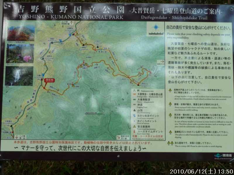 | 九州は梅雨入りしたとのこと。近畿地方は明日(6/13)から梅雨入りの模様。今日は梅雨入り前で天気予報では上天気らしい。 今日のルートは奥駈道の繋ぎの続きである。 前回は、阿弥陀ヶ森~大普賢岳まで来ているので今回は大普賢岳から七曜岳まで。 このルートとなると一般的には、和佐又ヒュッテからの周回であるが、そこからであると最後に無双洞からの 300mの登り返しを残すことになり、疲れた体でこなすのは心配であり(以前に八経ヶ岳へ行った帰り疲れ過ぎて立ち往生した経験がありトラウマとなっている)。このところ利用している水太谷林道から登ることにする。 ここからは過去2回来ているが周回するのは今回で2回目である。前回に周回した時は岩本新道を通り、最短ルートでの周回であったが、今回は和佐又のコルまで行って周回した。 今日は、天気予報通り上天気であるが高度 800mからの登りなので気温はそんなに高くないはずであると思っていたが、最初の登りから汗だくとなり、この調子で周回出来るか心配となった。暑くなりそうなので水を2㍑持参したため、逆に重量過多が響いたか? 大普賢名物の鉄階段の連続の所では 心臓パクパク・足ガクガク・汗ダクダクとなった。 普段から登りはゆっくりと歩くけど殆ど休憩を取らない歩き方をしているが、今回は何回も休憩を取り脈拍を平常に戻しながらようやく大普賢山頂まで辿り着いた。 山頂には単独さんが 2人いた。その後 3名の団体と途中食事中に追い抜いた夫婦連れが後から登ってきた。 何れも、周回者だがこの時間から周回して和佐又まで戻るとなると 4~5時位になるのでは? 取りあえず山頂に着いたが、疲れが激しかったため周回(本当の目的の奥駈道歩き)するかどうかを考えていたが、冷静に考えてみると、周回したほうが時間的に早いし、時間も十分にあるので当初の目的通り決行することにした。 昼食はいつも通りの稚児泊でする予定で周回路へ。疲れた体ではあるが過去に歩いた道であり立ち往生するような疲労までは至っていないし、大普賢山頂で暫く休憩していたら元気が回復してきたのでその後は順調に歩けた。 |