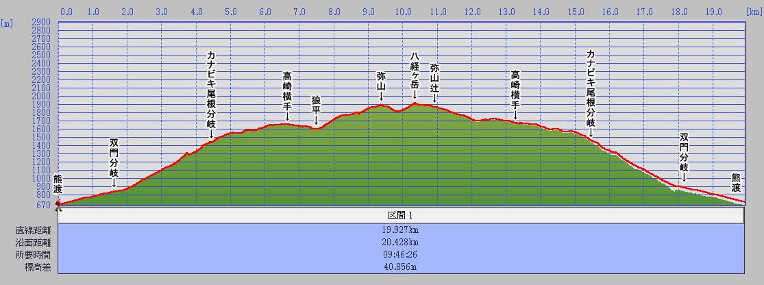 | 670m | 05:28 | ① 熊渡 | 2:25 | - | 2:25 | 出発時間 | 03:25 | 15:30 | ||