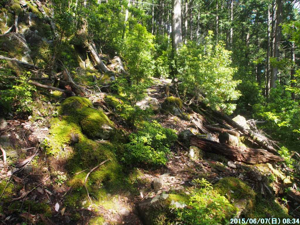 三角点から先は踏み跡もあり激坂はなくなったが、取っ掛かりの激坂登りでのダメージが残っており、通常のペースにはなかなか戻らない。