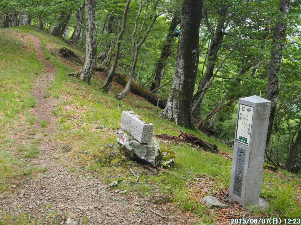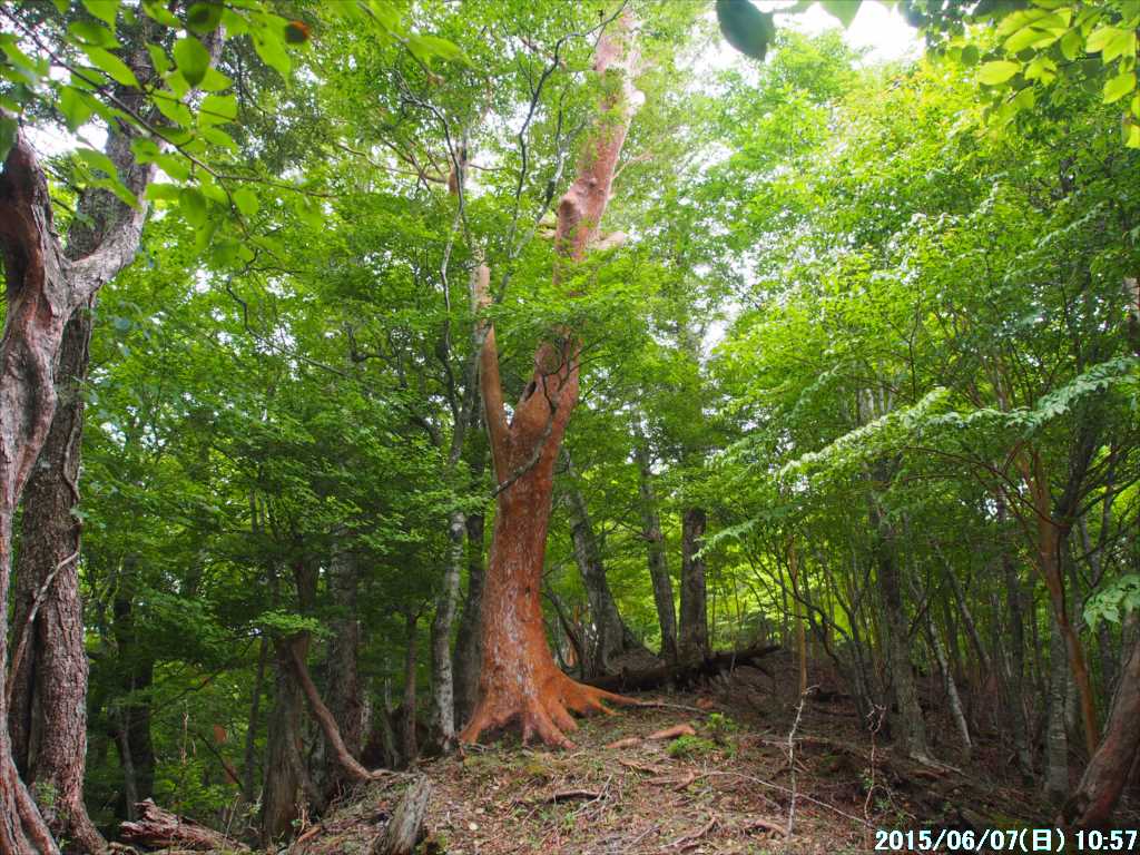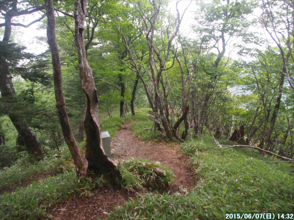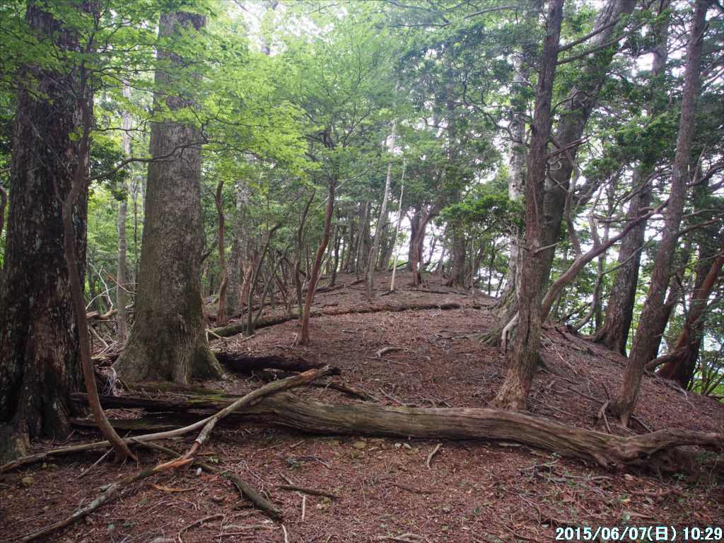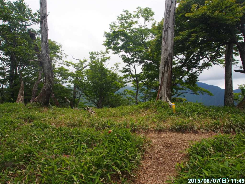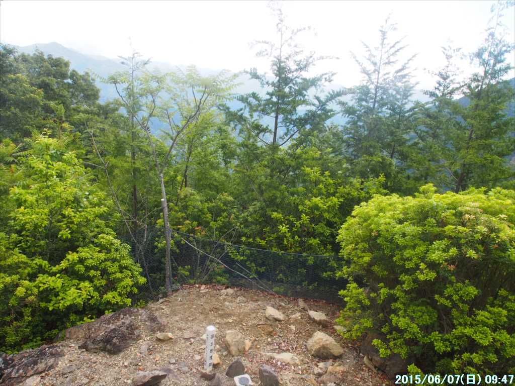 下山は天川辻の下にある謎の展望台から新田林道に下りる予定にした。その下山ルートも昨年の今頃(2014-6-15)に登りで経験している。