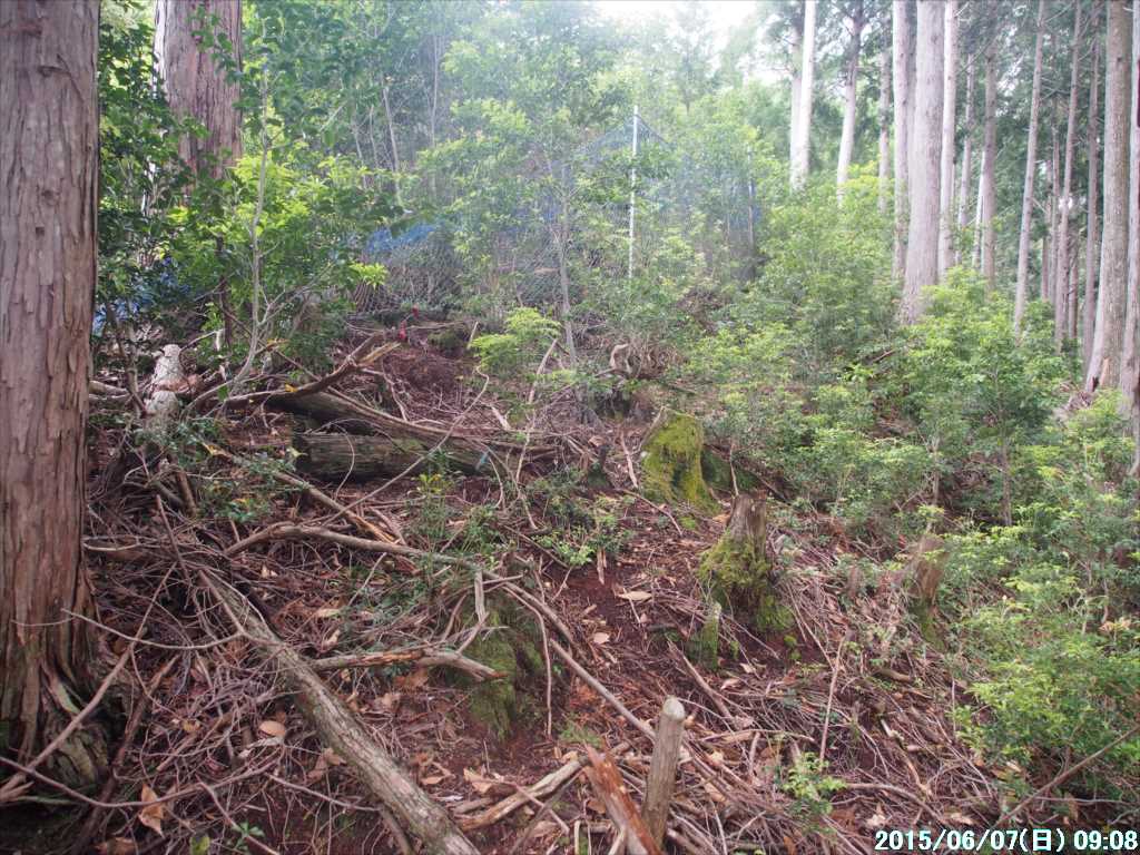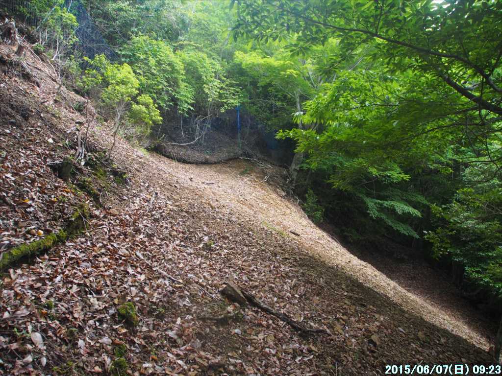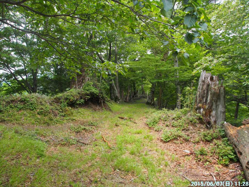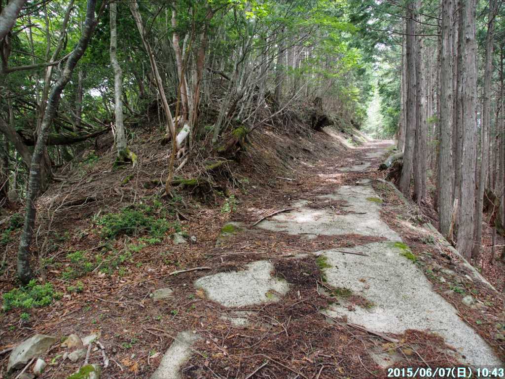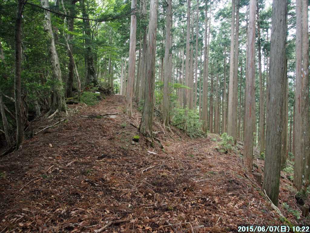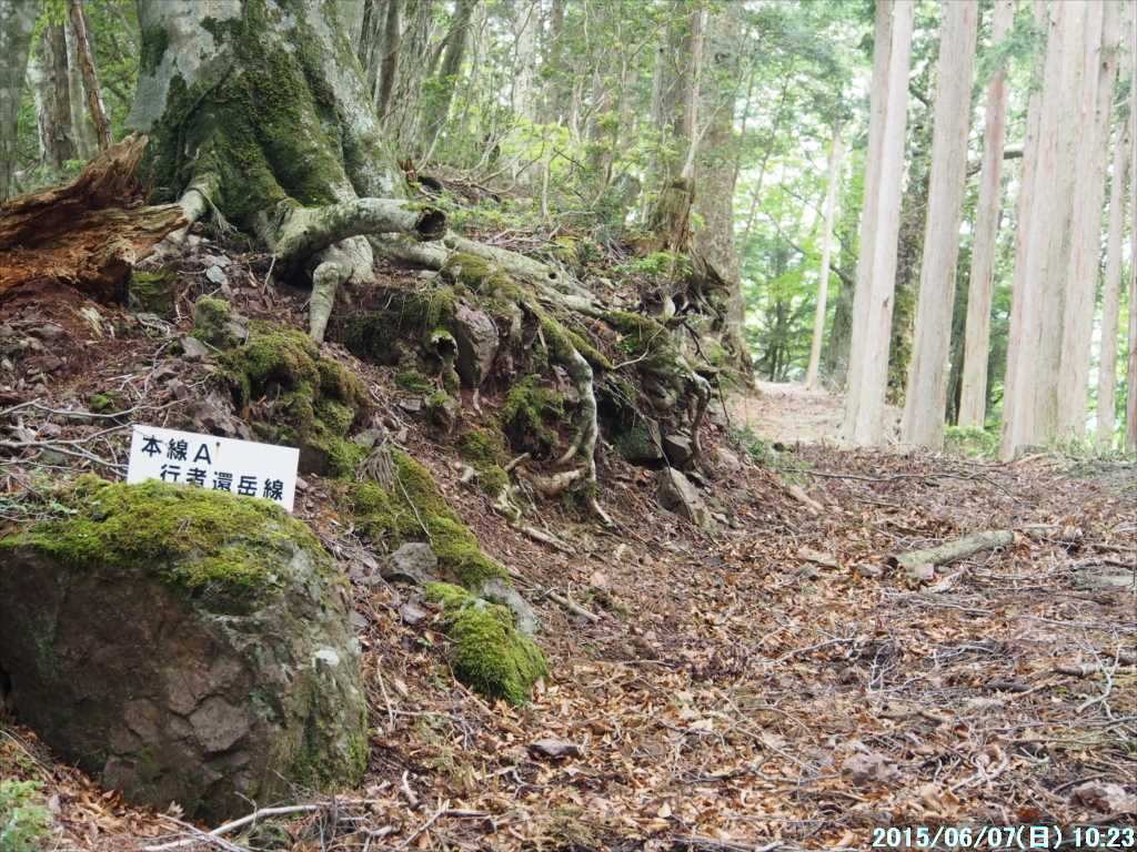 下山は天川辻の下にある謎の展望台から新田林道に下りる予定にした。その下山ルートも昨年の今頃(2014-6-15)に登りで経験している。