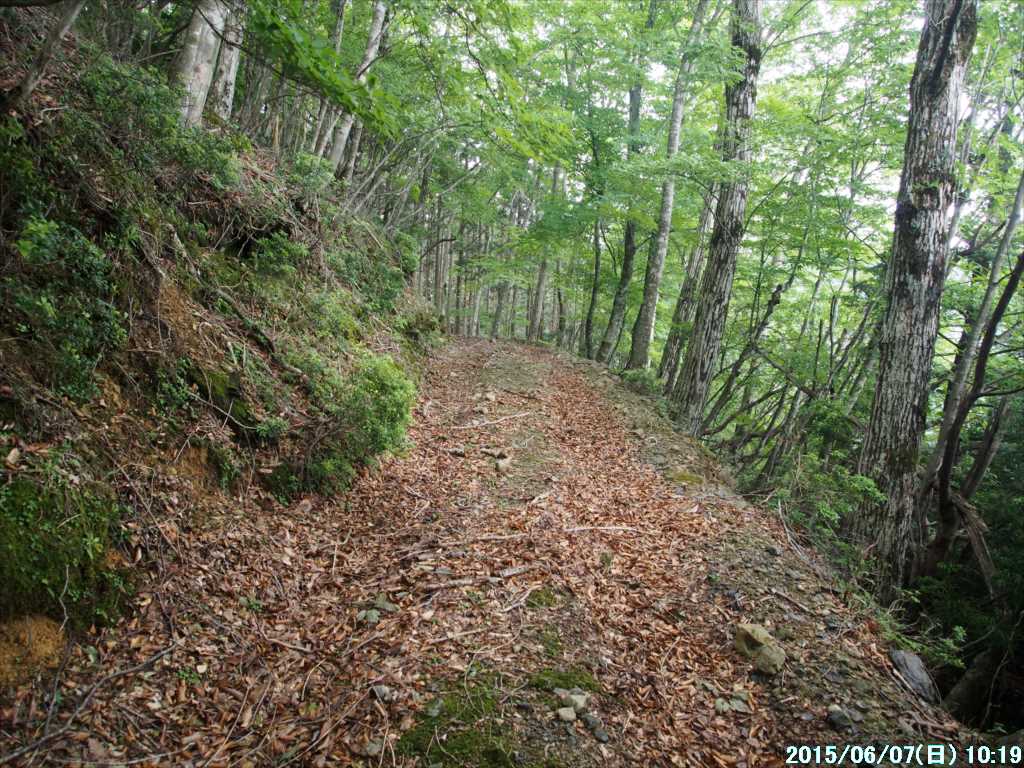 激坂を終えたあたりで、七曜岳のすぐ下ですれ違った、小学校の中学年の男の子とお父さんを追い抜く。和佐又まで戻るそうだが、あのペースでは和佐又に着くのは6時位になるのではないかと少し心配、一番日が長い時期なので7時くらいまでか明るいので大丈夫とは思うが・・。