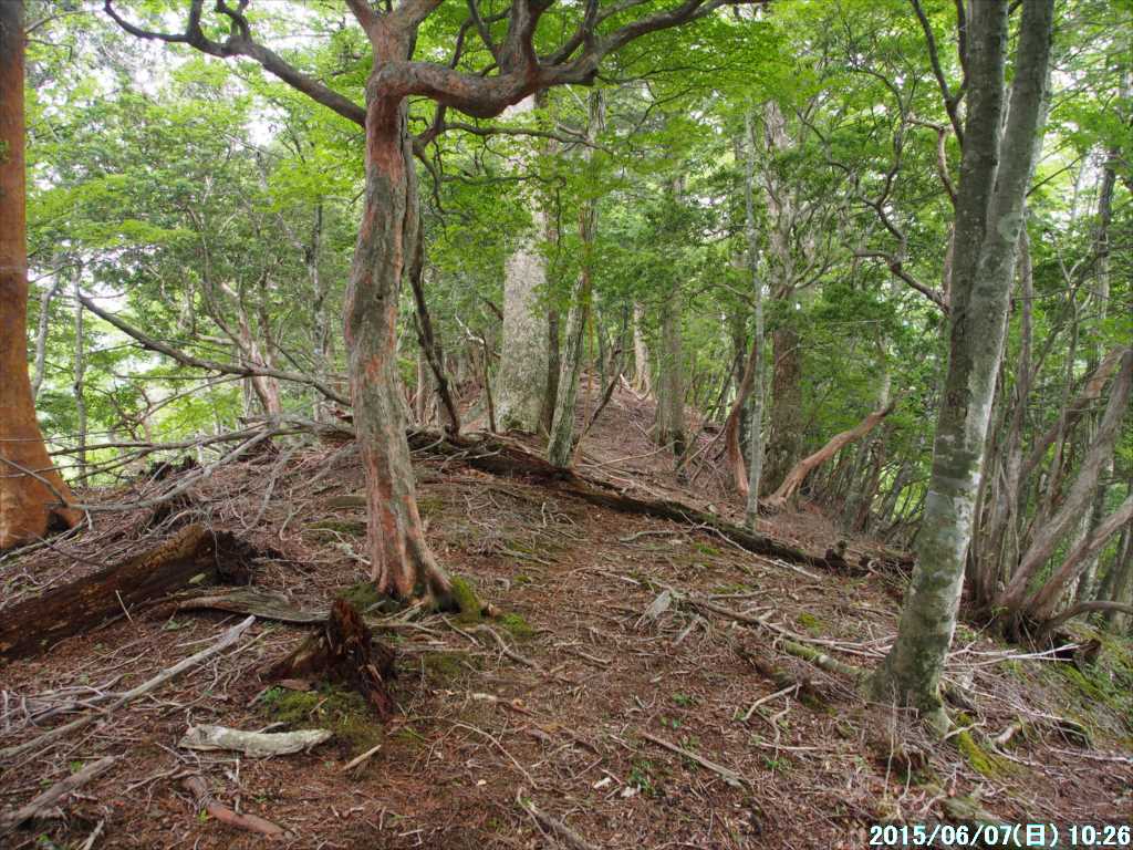 尾根芯がハッキリしだすと、ようやく歩きやすくなってきた。しかし傾斜は相変わらずキツイ。