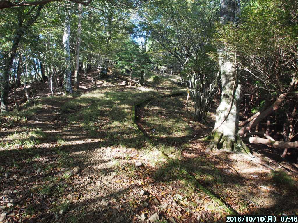 足元にミヤコササが現れ、その中の明確な踏み跡を登って行くと、間もなく奥駈の稜線に到着。スタートして 47分だった。