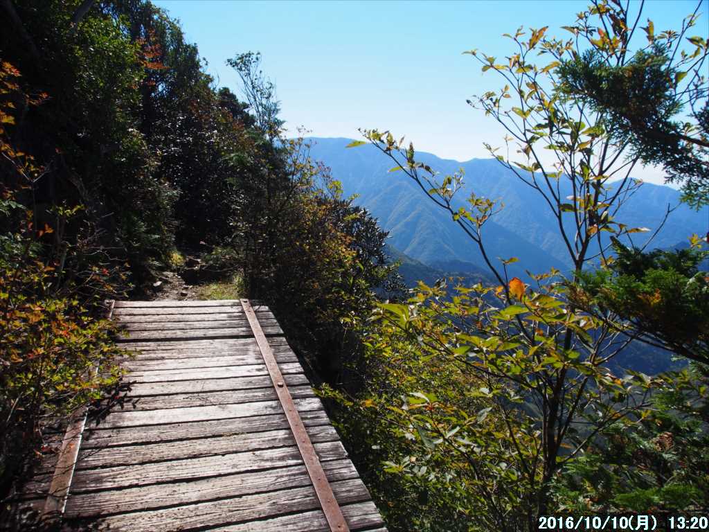 少し長めの鎖場を慎重に下り、濡れた木の空中廊下で滑らないように慎重に歩く。