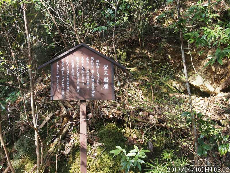 聖天岩屋を過ぎると、その安全柵はなくなるが、若干道幅が広くなるので問題ない。急斜面には仮設足場の様な鉄製の階段が何個所も取付けられてあった。その急角度の階段を登りながら。横から階段を支えている基礎部分を覗くと、基礎が地中から浮き出ている所もあり、少し怪しい気がしたが、当分は問題なさそうだ。