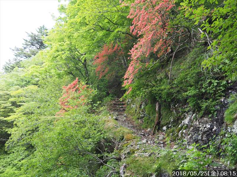 クサリ場の途中にある底無井戸の覗いてから、その先のクサリ場を少し頑張ると、山腹道に変わりダラダラの登りになった。