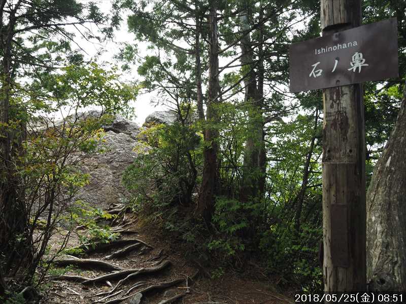 最後の鷲ノ窟の先で、岸壁の横から岩場を上がって行くと、「日本岳(文殊岳) 1,505m」の標識があったが、そこは日本岳のコル。そのまま先に進む。