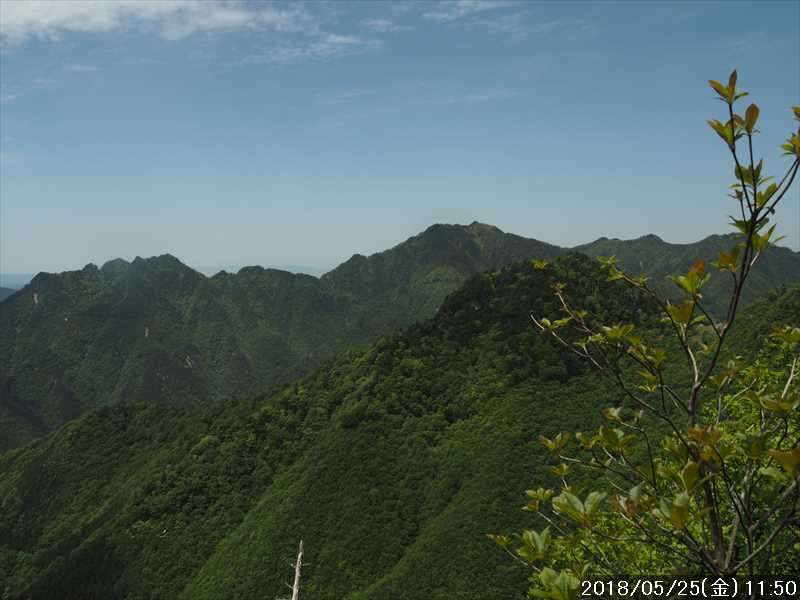 稚児泊りから少し上がると、展望が開けた所があり、目の前に大普賢岳・小普賢岳・日本岳がゴジラの出中のように見える。