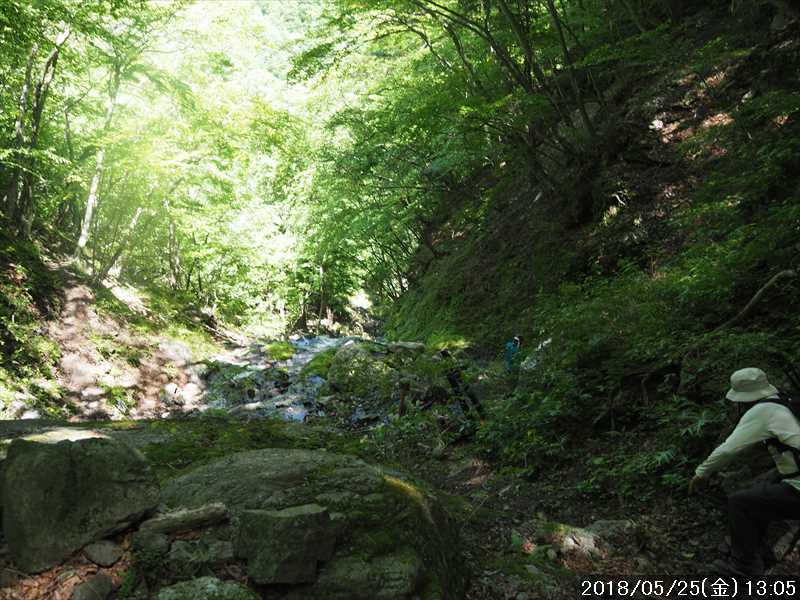 渡渉して、山腹を回り込んで涸れ谷(水太谷?)を越えると、150mほどの急登の始まりだ。岩場・鎖場を落石しないように気を配りながら頑張って登って行く。