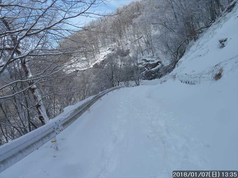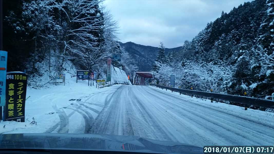 現地までの道路は全く心配していなかったが、黒滝茶屋を過ぎた登りで、急にお尻が振られた。見た目には分からなかったが路面が凍結していた。速度を落として慎重に走る。
