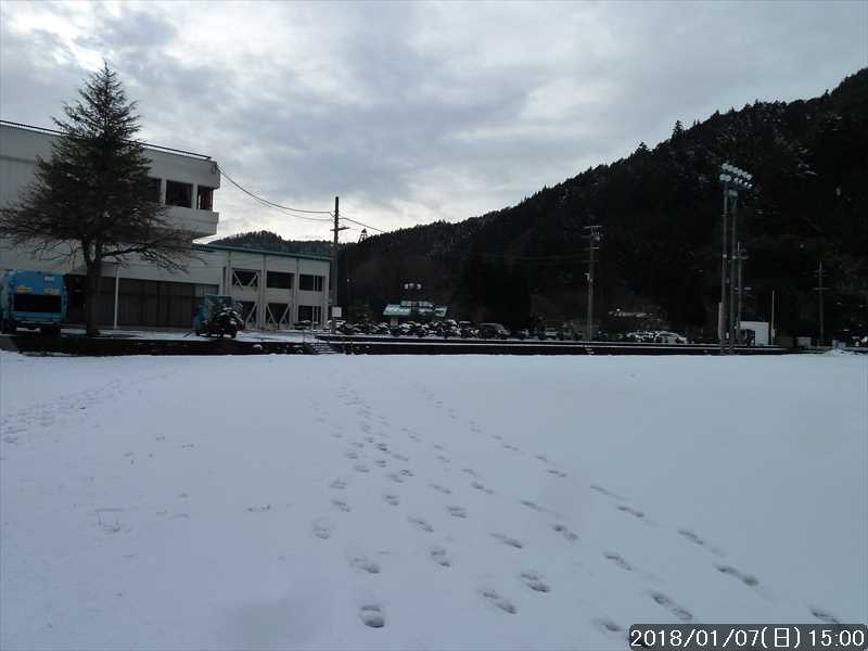 昨日降ったのか、僅かだ道路にも雪が積もっていた。そこは冬用タイヤが良く効いて問題なく走れ、目的地の天川村役場に到着。
