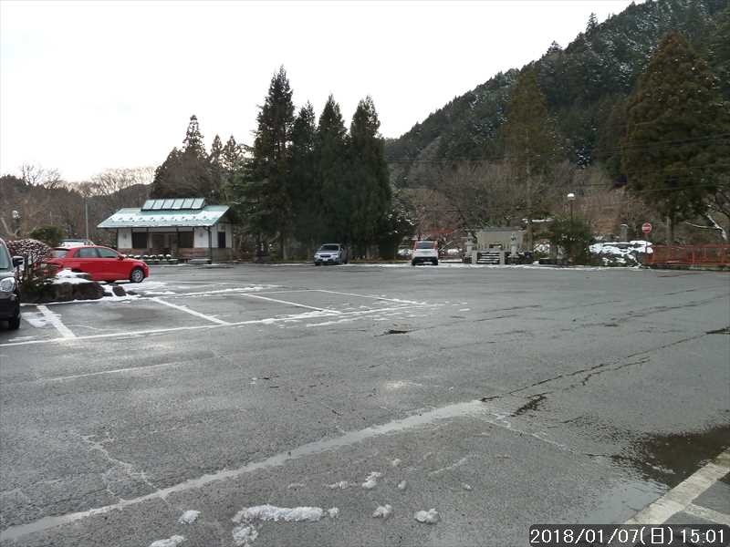 今日は、天川村の消防出初式がある模様で、駐車場の一部が駐禁になっていた。トイレの横の所に停める。