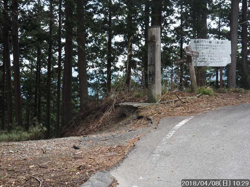 金峯神社まで戻り、源義経の隠塔から林道に下りて、その先は林道経由で四寸岩山に向かう。