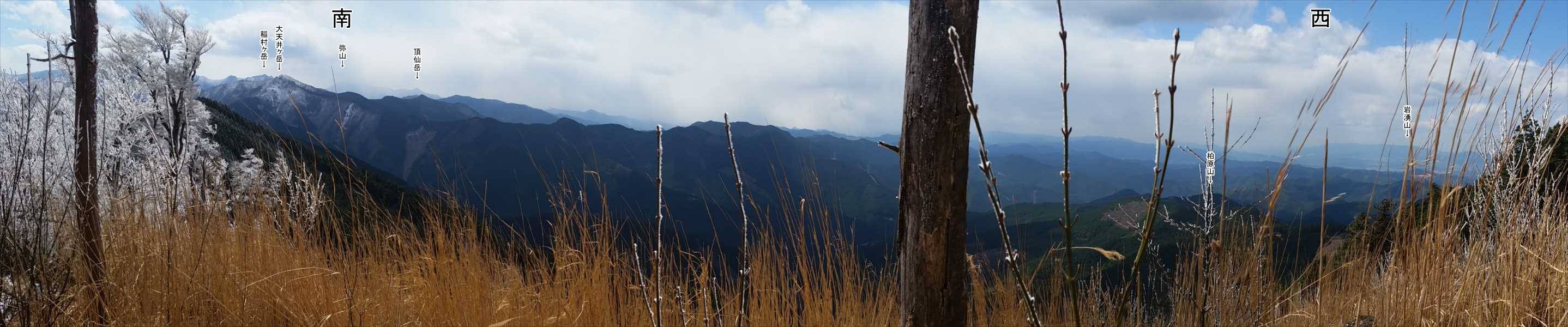 そこからは、金剛山・葛城山・二上山・生駒山の山並が真正面に見え、右手に吉野山の蔵王堂も確認できた。