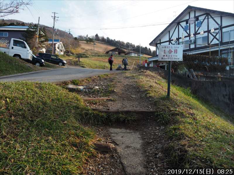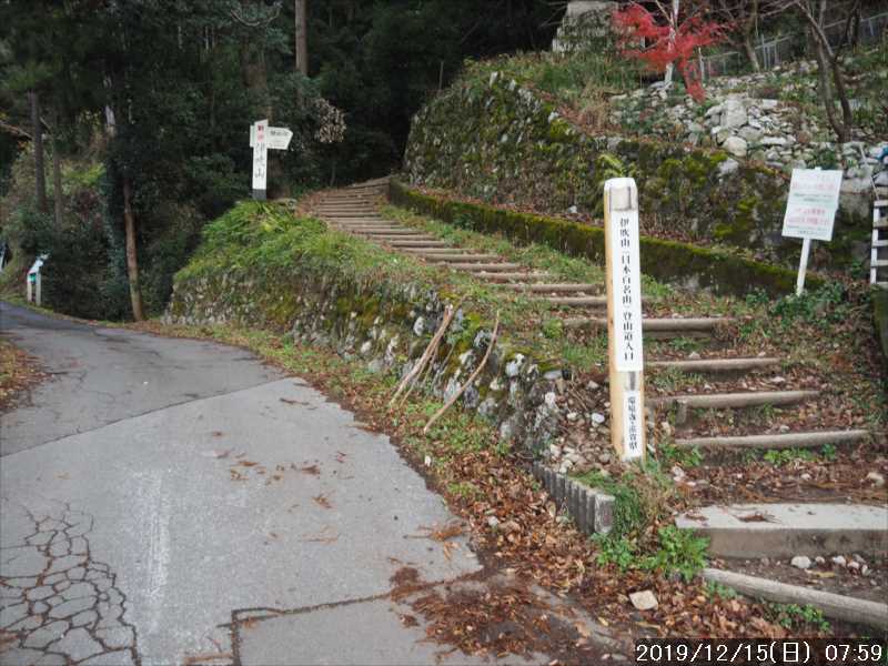 駐車場から少し下って上野の登山口から正面登山道に入山。