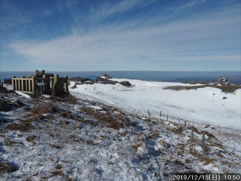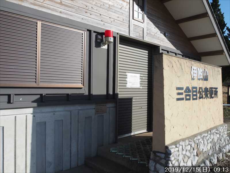 1合目まで樹林帯の中のジグザグ道を登って行く。開けた所に上がると 1合目に到着。売店等の施設は全て冬季休業中だ。自販機は販売中の模様だった。ここにある公共トイレも使用可能の模様だった。