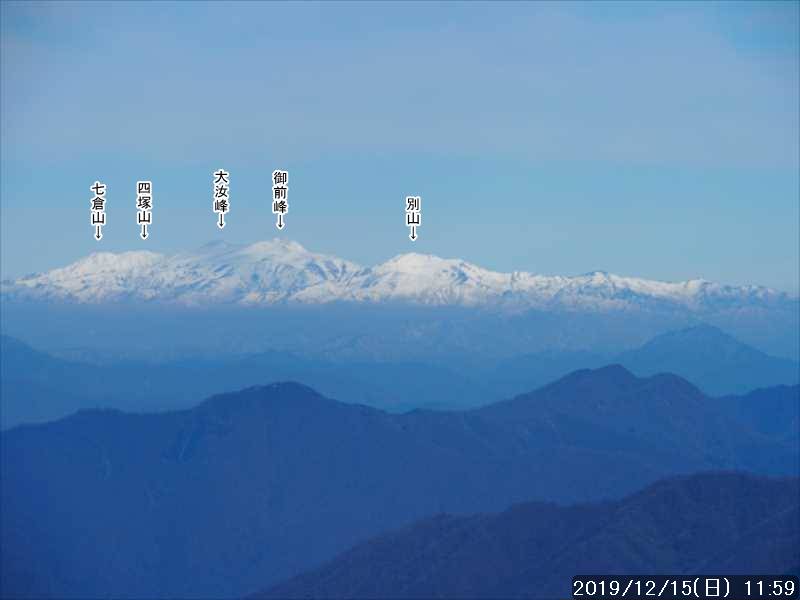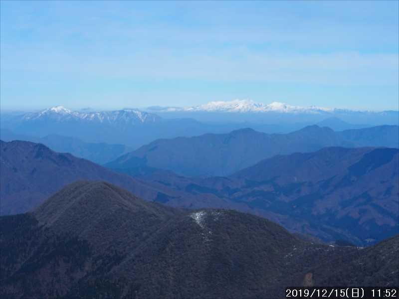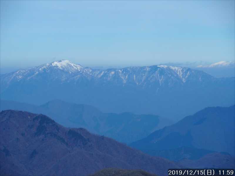 その三角点から、落ち着いて周りの景色を見ると、何と北アルプスまで見えていた。御嶽山・乗鞍岳はもちろん、白山は間近に見えていた。