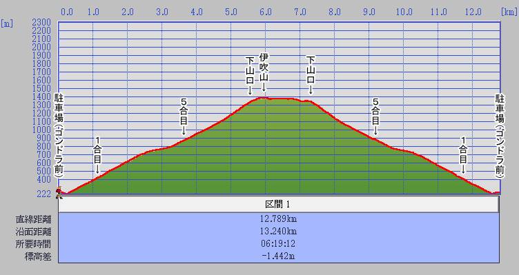 | 1377m | 10:46~12:17 | 1:31 | ⑤ 伊吹山 △1377.3 | |||||||
