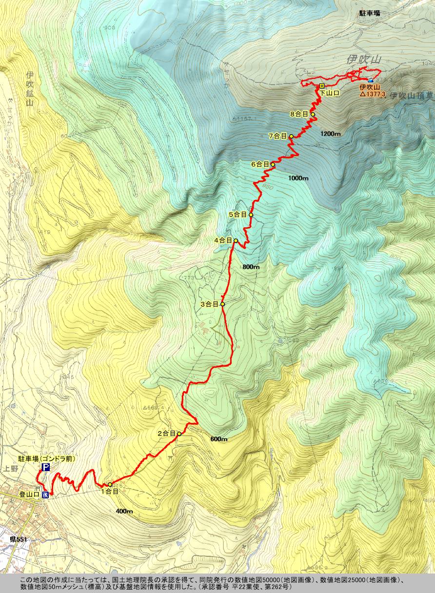 P ⇔ 登山口(上野) ⇔ 《正面登山道》 ⇔ 伊吹山 【往復】
