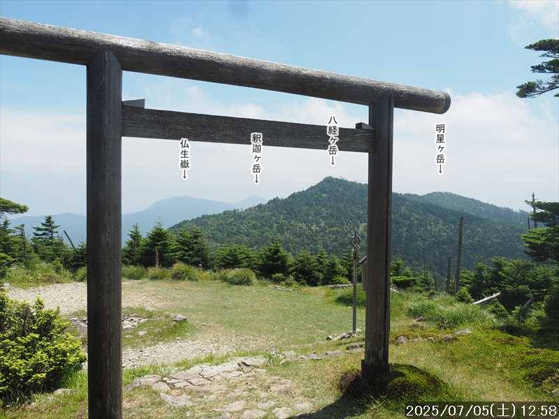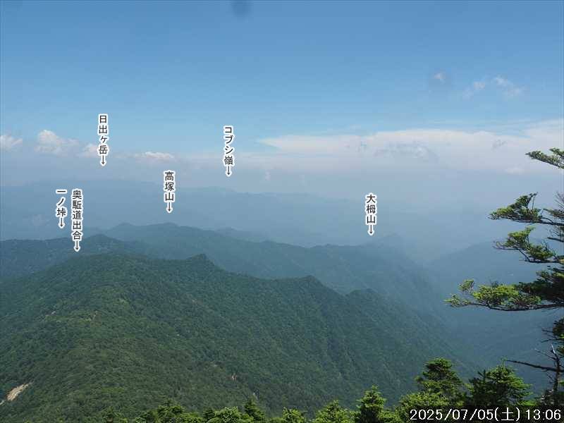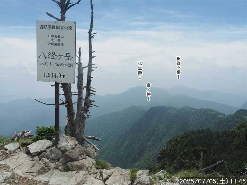 | 1915m | 11:45~12:28 | 0:43 | ⑤ 八経ヶ岳 △1915.2 | |||||||