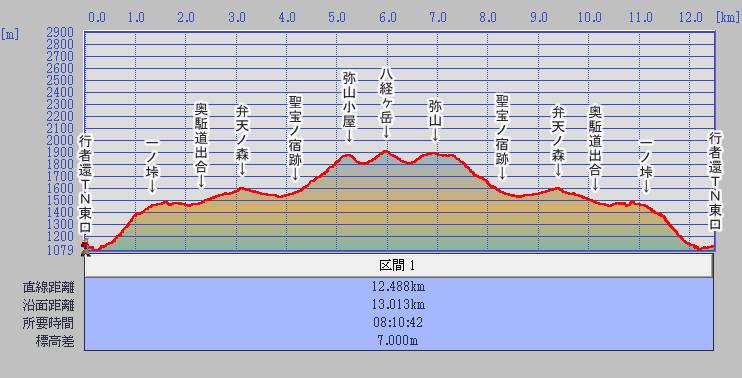 | 1100m | 07:48 | ① 行者還TN東口 | 1:03 | 2:14 | 1:03 | 出発時間 | 05:25 | 16:05 | ||