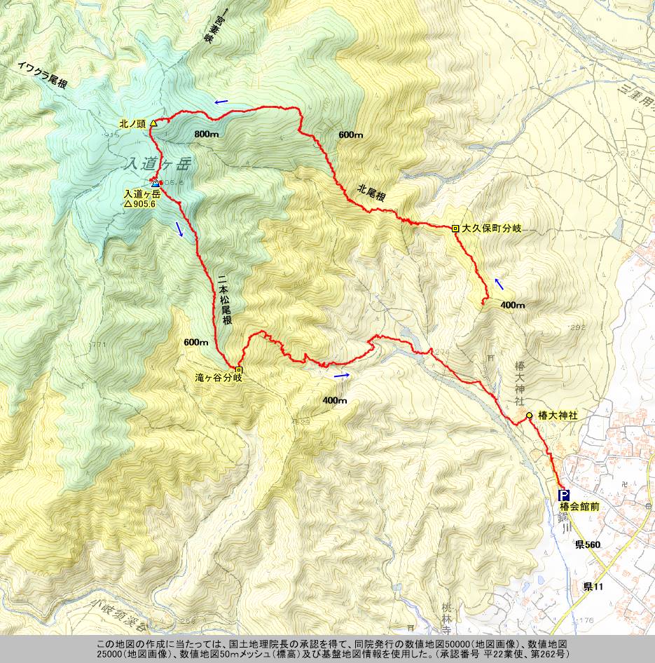| 905m | 11:44~12:37 | 0:53 | ④ 入道ヶ岳 △905.6 | 往復距離 | 183 ㎞/avg. - | |||||