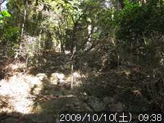 | 愛宕社鳥居より急階段を登り詰めたところに愛宕社があり、その左から山道が始まる 途中からの合流はあるが一本道で道を外す事はまずない。 下山は二本松尾根ルートでこのルートもよく歩かれており、ルートはハッキリしていた。 |