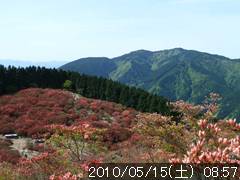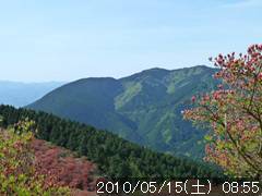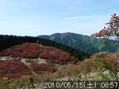 途中展望が開けた処より葛城山のツツジがきれいに見える |