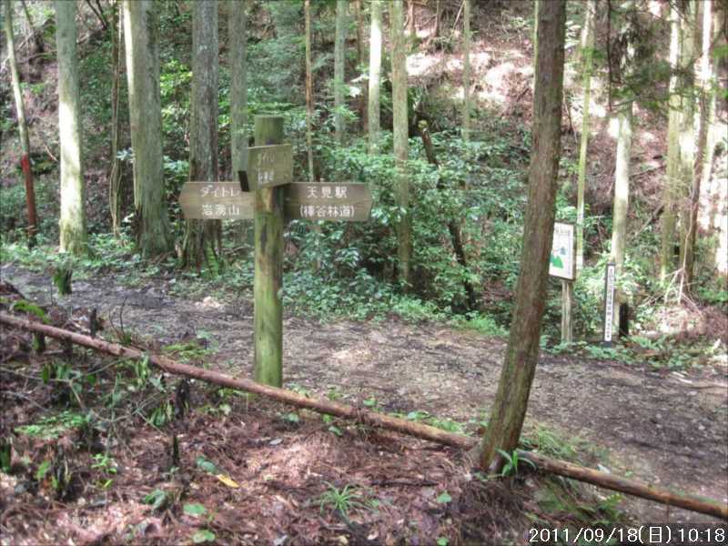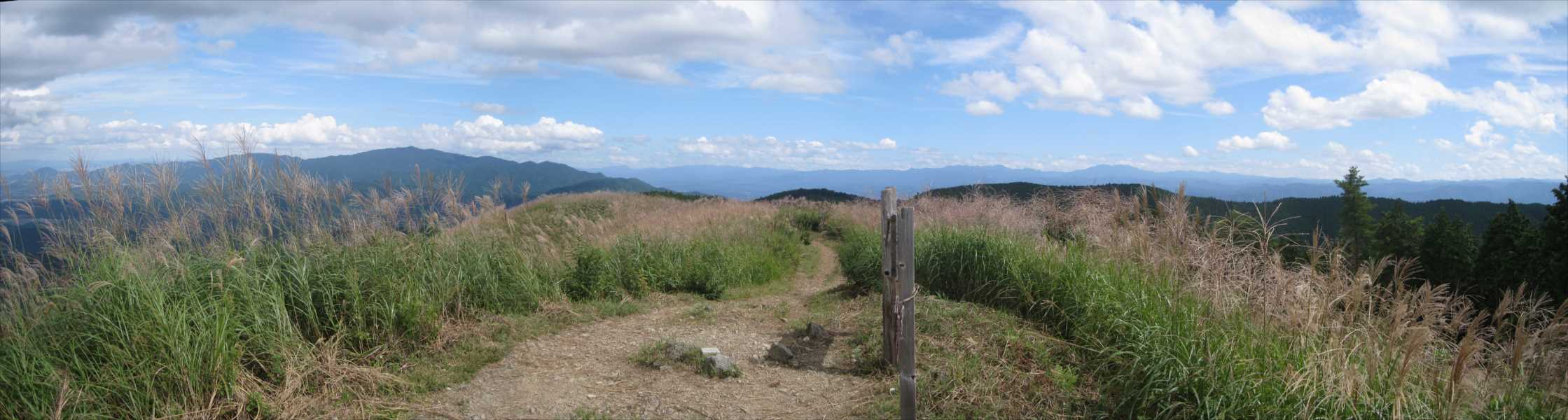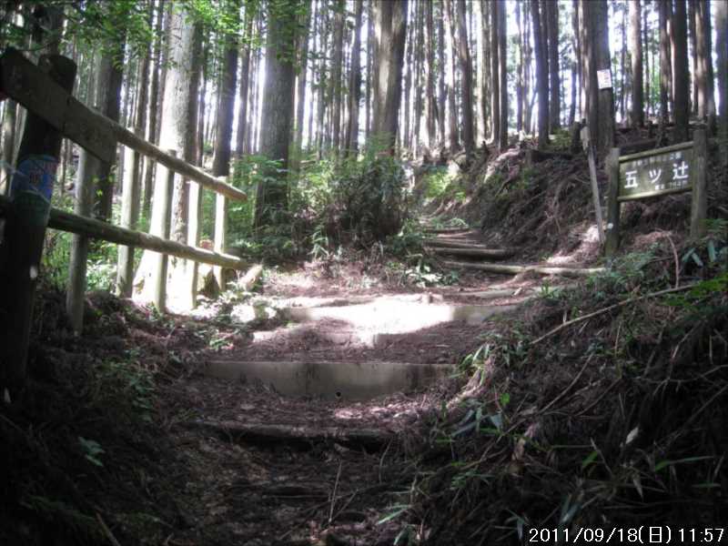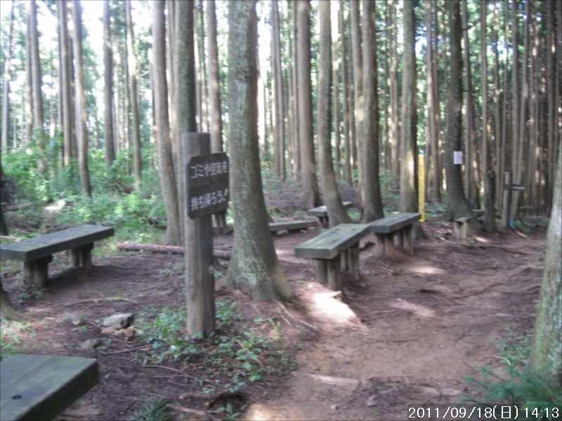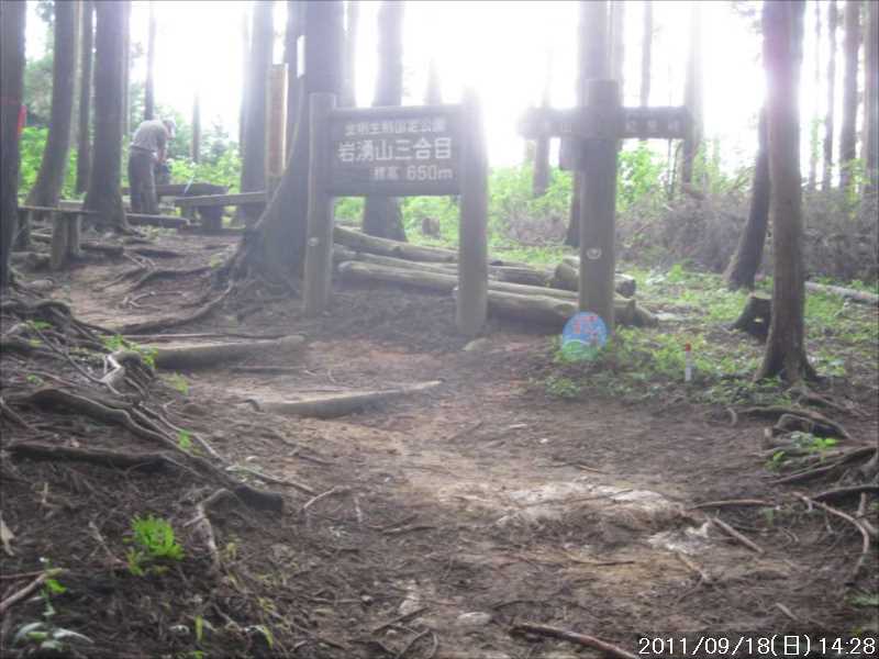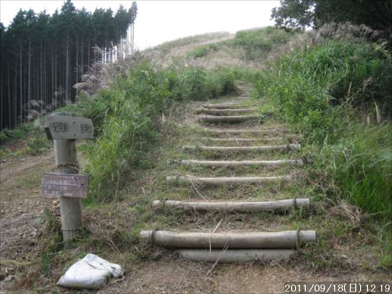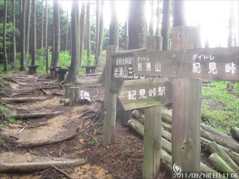 | 今週末は敬老の日の祝日があり土・日・月と3連休(9/17-18)だ。 沖縄方面にある台風15号の影響からか、当初の天気予報では3連休とも天候は悪いとの予報であった。 遠出はムリかとあきらめていたが、前日の土曜日に明日の日曜日のみ天候が回復するとの予報に変わった。3連休を家でボーとしていると老化が加速するので急遽出かけることにした。 行き先であるが、天候は回復するとの予報ではあるが、それでも少し心配であるので、先週に引き続いて手ごろな、ダイトレのプレート確認の続きに行くことにした。 ルートは紀見峠から岩湧山への往復だ。先週もこの紀見峠に来たが、その時は反対方向に行っている。 先週もそうであったが、今回も高度差は余りない(500m強)が小さなアップダウンが多くありそうなので、それなりのロードはあると思われる。 現地の駐車場所は先週と同じ位置に停めた、但し車は昨日より娘が使用しているので、娘の軽に乗って来た。カーナビはないが、先週と同じルートで来たので間違えることなく来られた。 但し、出だしで大チョンボ! 大和バイパスに乗る手前で、GPSを持参していないのに気がついた。何の脈絡もなく突然に持参していないのに気付く、不思議な現象だ。今回の目的はダイトレプレートの位置確認を目指しているので必須アイテムである。致し方ないので取りに引き返す。60km 1時間20分の無駄だ。 という訳で、遅いスタートとなった。 駐車地よりダイトレ入口に向かって歩くと、東方面に向かう単独さん・西方面に向かう4人グループがいた。 4人グループは紀見峠駅方面から来た模様で、入り口でルート確認等で一服されていたので、当方が先行して入山した。 歩き始めたばかりなので元気に歩いていたら、4人に高速で追い抜かれた。当方と同年輩と見受けられたが鍛えようが違うようだ。 ルートは前回(紀見峠~千早峠)同様に植林地・雑木林の中が殆どのため、直射日光には当たらないがその分展望はない。ただ日差しはないものの今日も蒸し暑い。 ルートはさすがのダイトレ道でシッカリ歩かれており山道というより遊歩道に近い。途中の分岐も多く各所からのアプローチ道がある。 分岐には必ず表示板があるので確認さえすれば間違えることはない。 が、その筈なのに、帰りに三合目で、表示板の紀見峠駅を紀見峠と見間違えて、方向違いに下ってしまった。往路で歩いた覚えのない道と途中で気がつきGPSで確認すると方向違いに下っていた。高度差で 50m以上は下っていた。 引き返しの登りがメチャきつく感じた。深く考えずに思い過ごしてしまう悪い癖がまた出てしまった。反省。 その道間違いをした三合目で、パンを1個かじり小休止。夫婦連れが先に休憩されていたが直ぐに出発された。入山してから、例の4人グループ以来 初めて見かけた人だ。 肝心のダイトレプレートは、紀見峠入口のプレートの表示には、次は根古峰となっていたので、根古峰に到着して表示板の辺りを探したが見当たらなかった。三角点のある山頂にあるのかと思い、帰りに登って探すこととして、そのまま通り過ぎて 130mほど進んだら道の右にそのプレートがあった。 プレートの表示には、次は今日の最終目的地の岩湧山となっていた。 分岐の多い場所をいくつか過ぎ、暫く行くと五ツ辻の大きな表示があった、大きな分岐点かと思いきや単なる通過点だ。 先行していた夫婦を追い越して先に進むと、突然に大勢の人が休憩されているところに出てきた。岩湧寺からの合流点だ。 ここまで人のいない静かな歩きであったが、様変わりだ。子供連れ・小学生の団体もいた。 岩湧山の東峰から鞍部に下ると立派なトイレがあった。ここから先の山頂一体は有名な茅場になっている。新しい案内板には平成21年に文化庁よりふるさと文化財の森として設定された とあった。 ここを登り返せば二等三角点のある岩湧山の山頂だ。三角点を写真に収め少し先の展望地に向かう。 三角点の周りは狭い為、皆さんこちらの展望地で昼食・休憩している。そこには山頂表示や展望案内図等が多くある、ダイトレプレートもこの辺りにあるかと思い一生懸命探すが見つからなかった。 ちょうど昼食タイムであるが、多くの人がここで休憩・昼食をされており、ベンチが一杯の為、ここでの昼食はあきらめ引き返し三角点近くの展望のないベンチで昼食とした。 昼食を終え、再び三角点を通るとその脇にダイトレプレートがあった、往きに気がつかなかったのはそのそばに人がいたせいのようだ。 プレートの表示で次は滝畑となっているので、以前に確認している西の基点の槙尾山のプレートには、次は滝畑となっていたので、これで残りは滝畑・槙尾山のあと2枚となった。 往きに少し頑張って歩いたせいか、帰りにバテが出てきた。五ツ辻の少し先の水場で乾いたのどを潤す、持参した水はまだ1㍑以上残っているが、この冷たい水がおいしい。ついでに冷たい水を保温容器にいれたペットボトルに補給。往