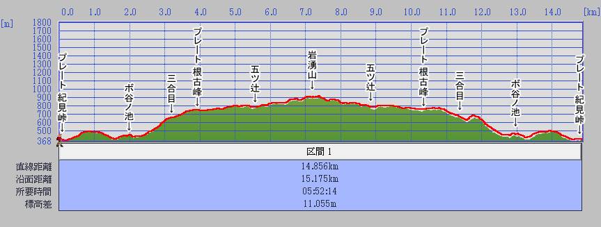 | 370m | 09:43 | ① 紀見峠 駐車地 | 1:21 | 1:30 | 1:21 | 出発時間 | 08:00 | 15:45 | ||