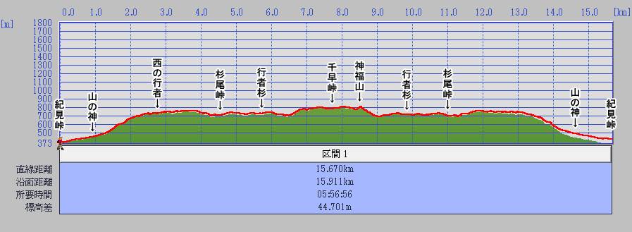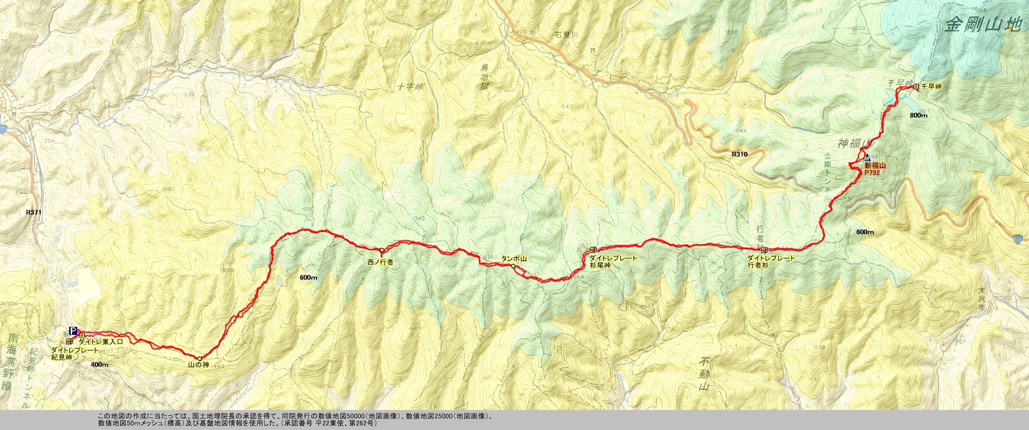| 紀見峠のダイトレ入口から千早峠への往復 | |