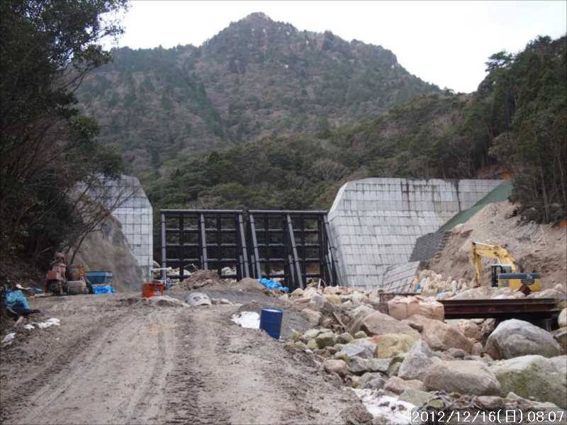 | 今日は衆議院議員総選挙の日、帰宅後に投票に行きたいが戻れるかな。 今日の予定は鈴鹿スカイラインの冬季通行止めまで行き、裏道の藤内小屋から岳不動経由で国見尾根に上がり、国見岳・御在所山から鎌ヶ岳まで行きたいと思っている。鈴鹿のセブンマウンテンの中で鎌ヶ岳のみが未踏である。 今日もレンタカーで出発。11月20日に追突されたあと、23日にディーラーに修理に預けた。それから3週間以上経つのにまだ修理が終わっていない。相当ダメージが大きかったのだろうか? そのレンタカーにカーナビは付いているが、セッティングの方法が分からない。今日の目的地も現地までは勝手知りたる道なのでナビの案内がなくても問題ない。 伊賀上野の中瀬ICから西名阪に入り、暫く走って行くと空が白み始めた。上空はほとんどが雲に覆われている。天気予報では今日は晴れとなっているので、これから回復することを期待する。 鈴鹿スカイラインに入ってからも、積雪や凍結もなく冬季通行止めゲート前に到着。まだ早い時間なのに相当数の車が駐車している。従って少し下の方に駐車。 車から降りると、気温はそれほど低くないが、風があるので体感温度は低く感じられる。 スカイラインの通行止めゲートから蒼滝トンネル手前の裏口登山口に向かう。今年初め(2012-1-7)にもここに来ているが、その時はスカイライン上にも、そこそこの雪が積もっていた。今日はその雪は全くない。 裏口登山口から川横のルートに下る、川沿いの岩場の歩きにくい道で不鮮明な所もある。暫く行くと一旦工事用の道路に出る。前回は登山口からこの道路を歩いたので、今回は正式な裏道ルートをたどったがシンドイだけだった。 ルートはここから山道に入り、工事中の堰堤を高巻きしているが、今度は工事用道路を歩き、堰堤の真ん中を突っ切って省エネを図った。 藤内小屋に着くと数組が小屋の外と中とで休憩していた。ここでウインドブレーカーの下のフリースを脱ぐ。 小屋の先で国見岳方面に橋を渡る。渡ってすぐ分岐があり、左は国見尾根方面、直進が岳不動・腰越峠方面となっていた。岳不動経由で国見尾根に登る予定の為、ここは直進、踏み跡は一部を除きシッカリしている。分岐に気をつけながら進んで行く。 朝明渓谷・ヤシオ尾根分岐を右に見て、谷沿いに進む。大分先で丸太橋を左岸に渡り、暫く進むと右に2~3mの岩場にロープがかけてあり、凍結に注意しながら登る。そのすぐ先に滝を背景にした岳不動があった。 この先に国見尾根に向かう道があるのかと、周りをを探すが見当たらない。周りの地形からもこの付近からの取り付きではなさそうだ。分岐を見逃しているのかと思い、注意しながら戻る。しかし分岐の表示・テープ等は見当たらない、それらしきところを途中まで行ったりしてウロウロする。そんなことを何ヶ所かで繰り返したが、結局見つからず。致し方ないので藤内小屋の分岐まで引き返すことにした。1時間半のロス この時点で、当初予定していた鎌ヶ岳への登頂は厳しくなる。 藤内小屋の手前の分岐まで戻り、国見尾根を目指し登る。 いきなりの急坂と、先ほどの徒労でシンドイ登りとなる。途中何度も足を止め息を整える。大分登ったところで、ルート上に残雪が出始めた。残雪には足跡があり先行者がいる模様だ。上の方まで来ると岩場もあり、両手を駆使しながら足を大きく上げ乗り越えて行く場面もある、思いのほかハードはルートだ。 一旦下った尾根の鞍部に出ると、ここが岳不動への分岐点となっていた。ザレ場でとても登り下り出来るような場所ではない。表示にはバッ点マークで「岳不動尊・危険通行止」となっていた。いつのころルートが崩壊したのか分からないが、山道は自然に還ったようだ。岳不動から道が繋がっていなかった理由が分かった。藤内小屋の登り側にも通行不可の表示があれば有難かったのに と思う。 ゆるぎ岩の手前で4名のグループとすれ違う。藤内小屋を先に出発したグループだ、御在所山へ行っての帰りだろうか? そうであれば相当なハイペースだ。 ゆるぎ岩のある尾根に出ると、吹きさらしで風が強い、時折吹く突風で飛ばされそうなくらいだ。パノラマを撮ろうとカメラを横に振っていると風で体が揺れ、まともにカメラを横に振れない、何度かやり直しをする。 ゆるぎ岩の先を少し登ると、平坦な癒しの自然林の中に入る、すぐ先で縦走路に出合う。 そこから御在所山の反対方向にある国見山はすぐだ。 その国見岳で昼食とするが風が強いので岩陰に立って食べる、落ち着いて食べることが出来ないので、おにぎりとパンを半分しか食べられなかった。 御在所山への最後の登りでは、雪で滑るが、何とかアイゼンなしで登ることが出来た、下ってくる人は程んどがアイゼンを付けていた。 山頂公園に出ると、正面のスキー場には殆ど雪はなく、従ってスキー客もいないので閑散としていた。 ここまで、岳不動からの引き返しを別にしても