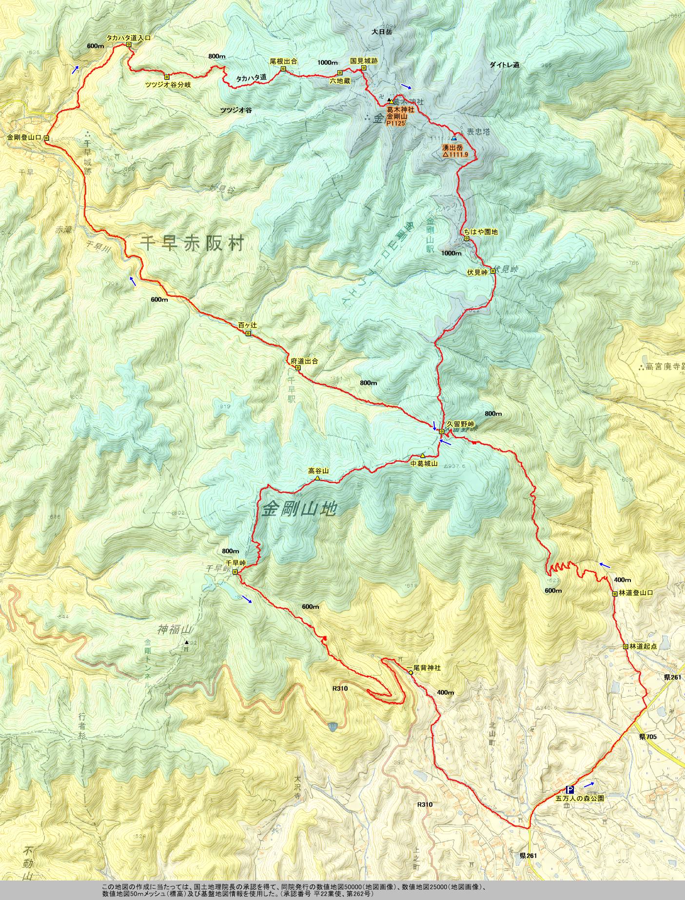 | ルート :↑久留野峠・タカハタ道、↓千早峠 | |||||