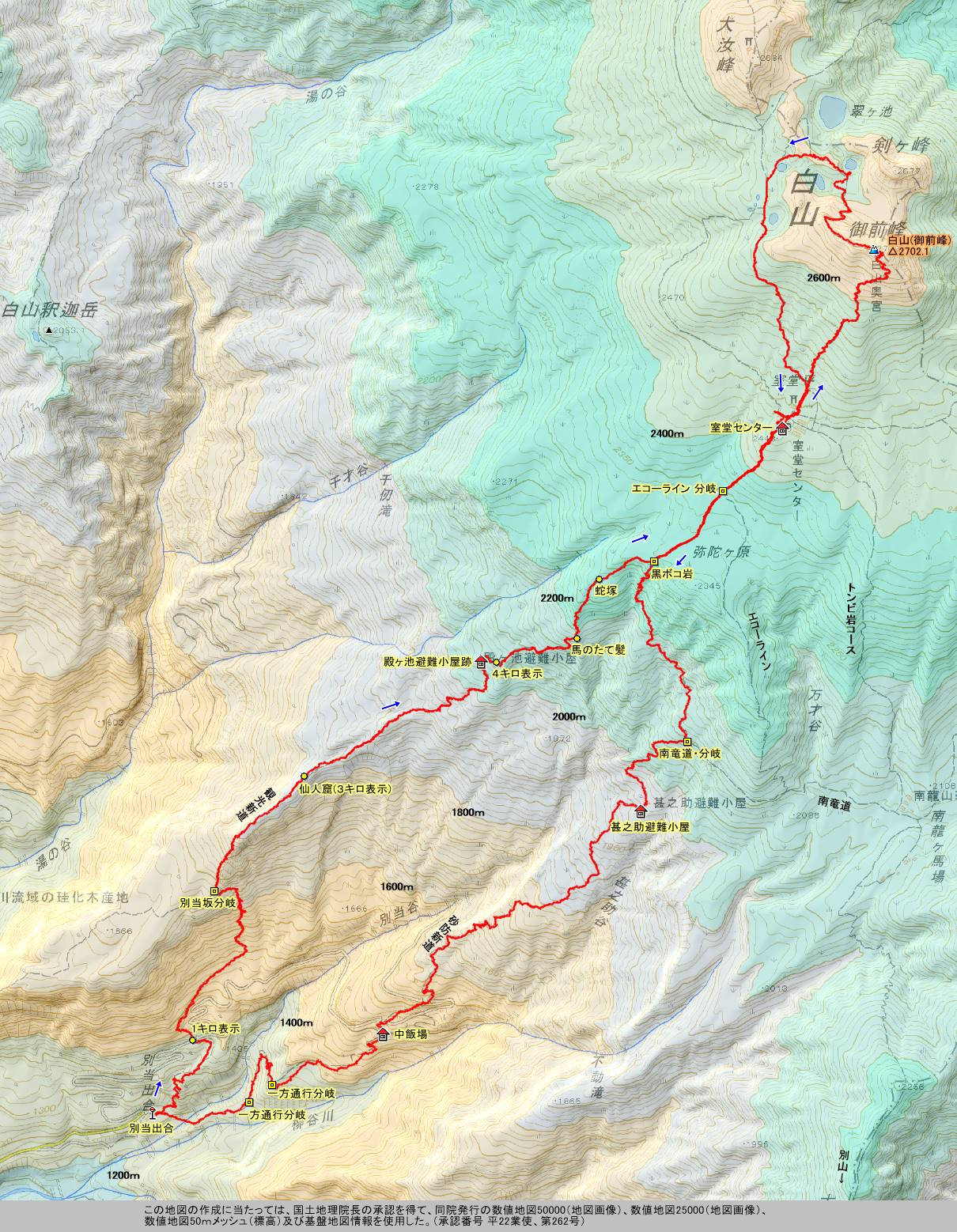 | 1250m | 05:18 | ① 別当出合 | 1:06 | 1:40 | 1:06 | 出発時間 | 17:00 | 16:00 | ||