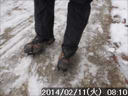 舗装道路上に凍った雪の上をガリッ・ガリッと踏みしめながら歩いて行く。