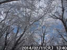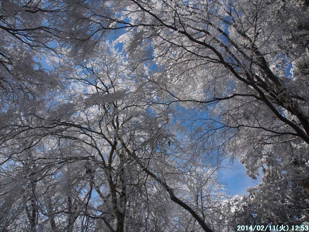 ここにきて天候は天気予報通り晴れてきた、「真っ青な空」に「真っ白な霧氷」はコントラストがあり綺麗だ、この冬初めての景色。