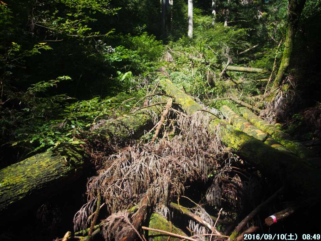 その先、所々で倒木が邪魔をしたが、、越えるのが厳しい倒木にはステップが切ってあったりしていたので、通過するのは問題なかった。