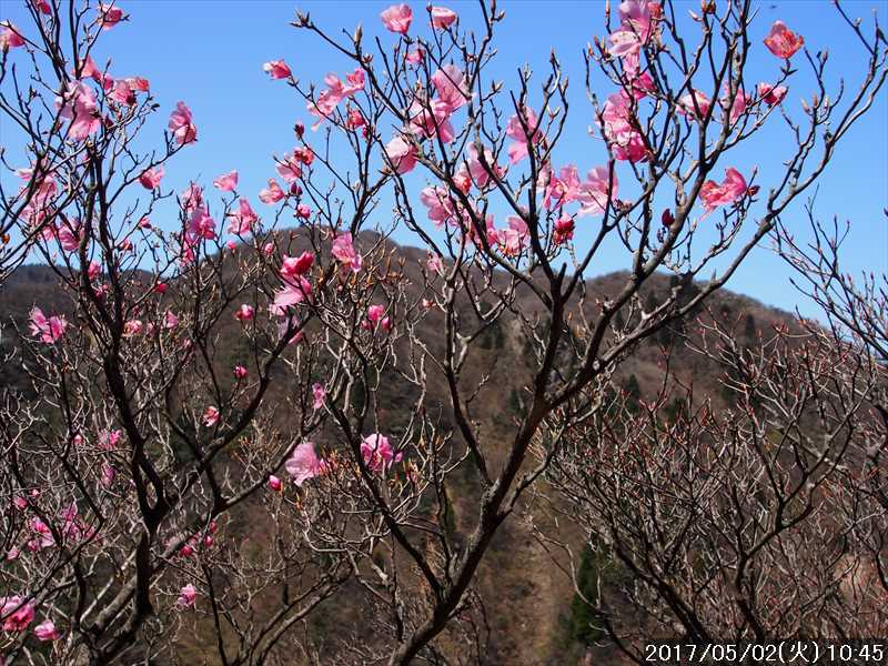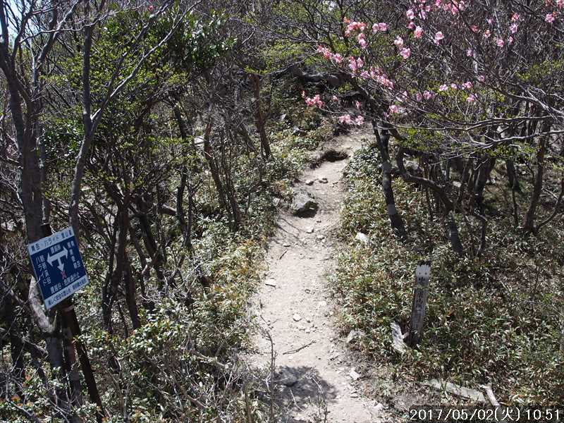 縦走路に合流した付近のアカヤシオ 疎らにしか咲いていなかった |