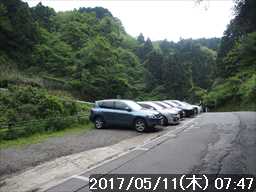 水越峠の下にあるバス停(バス車庫)横の駐車場が空いていたので、そこに駐車する。