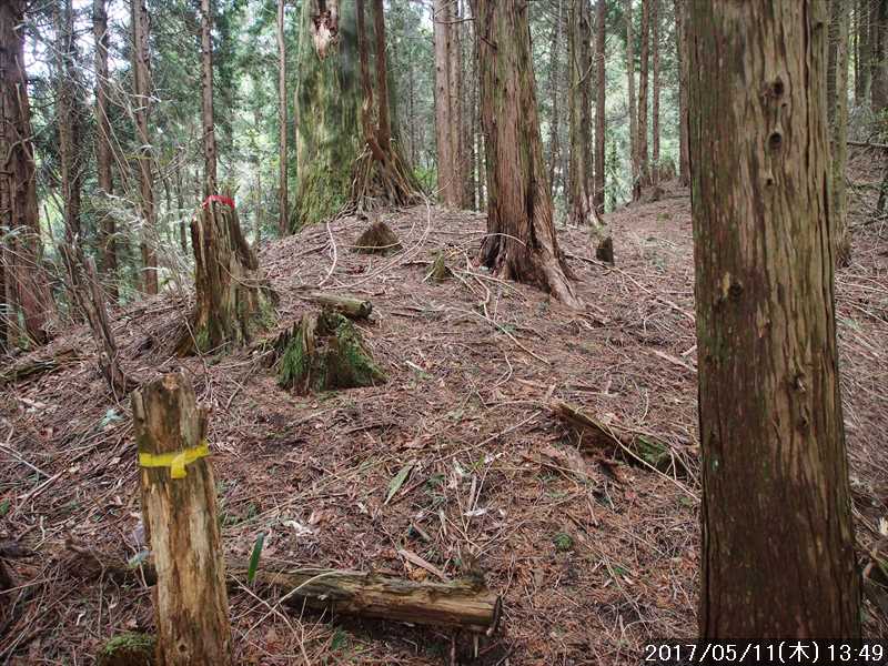 一旦太尾塞跡に行くが再び戻ってしまう。道は下って行くのでおかしいと思い、何度も確認してようやく間違いに気付く。方向感覚がくるってしまい、中々間違いに気づかなかった。