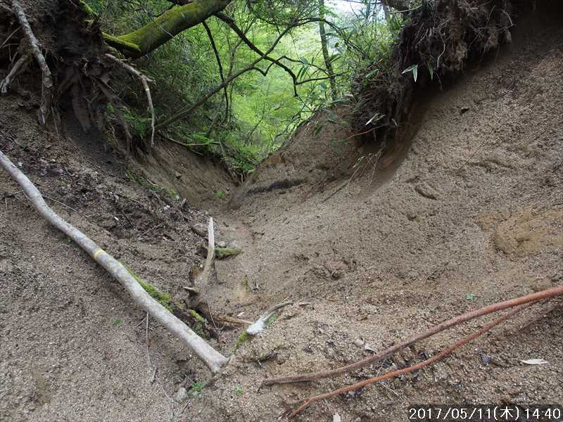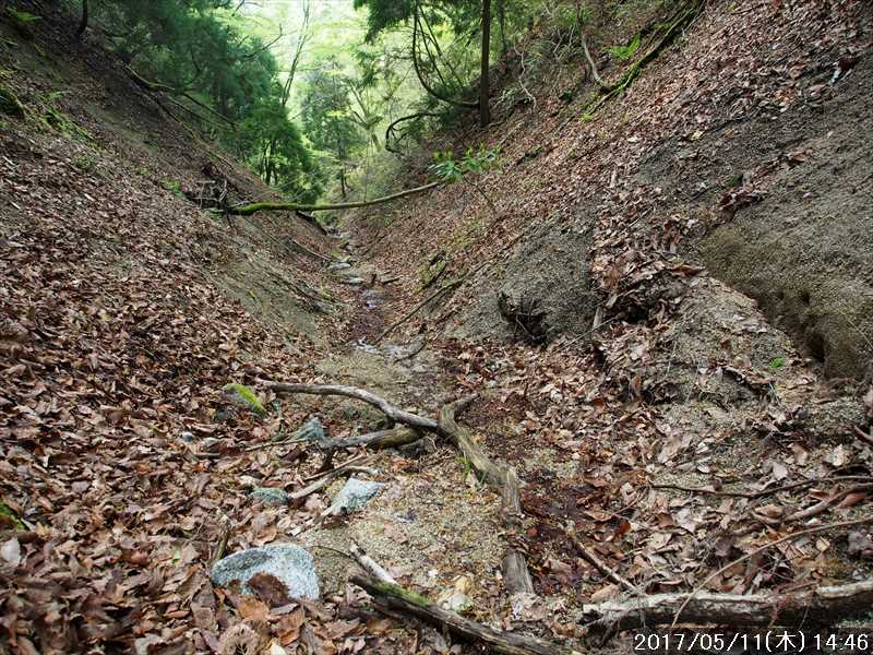 青崩道を少し下ってから、再び横の石ブテ西谷の源頭部に下りやすそうな場所から下る。