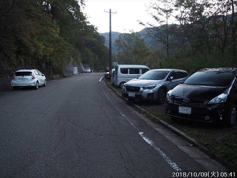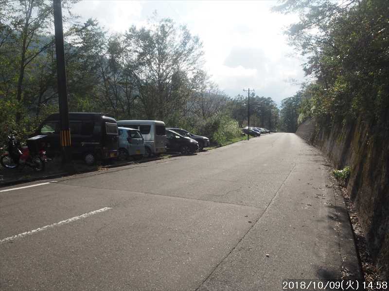 | 別当出合 ゲート前の県道横 駐車地 ※ 登山口まで高低差はないが少し距離があるので、距離の近い下の駐車場とどちらが便利かな |