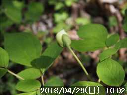 次にヤマシャクを求めて、踏み跡のある所を横の方に入り下って行く。すると、数株しかなかったが大きな花を着けたヤマシャクを見つける。
