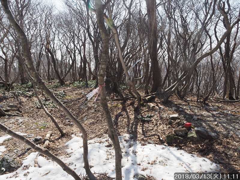 ここまで、メジャーなルートではないので、ややこしいかと少し覚悟してきたが、登山口が分かりにくかったのみで、谷中のルートも尾根のルートも障害物はなく、テープ・リボン等があり踏み跡もシッカリしていたので迷う事はなかった。危険地帯は細尾根部分のみ、その部分は積雪期にはより注意が必要かも。