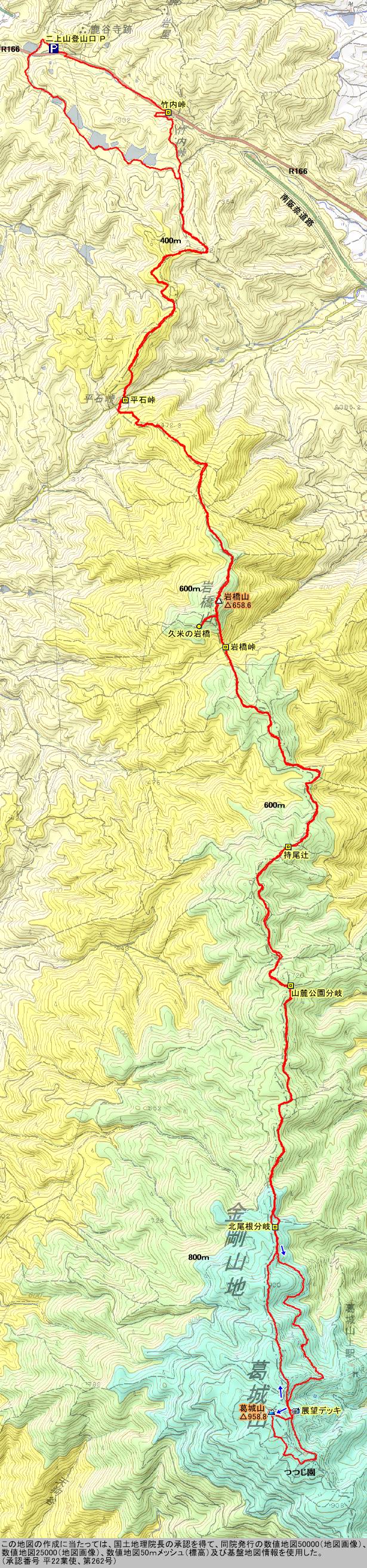 | 15:21 | ⑩ 二上山登山口 P | 総上昇量(GPS)map60 | 1459 m | |||||||