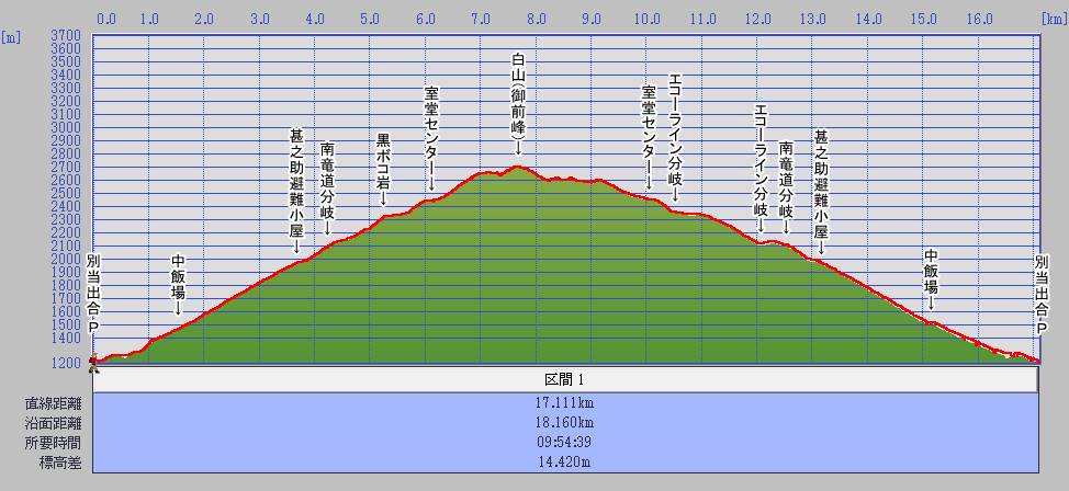 | 2702m | 10:18~10:41 | 0:23 | ⑤ 白山(御前峰) △2702.1 | 【車中泊地】道の駅;恐竜渓谷かつやま | ||||||