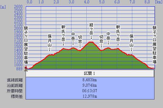 | 14:32 | ⑨ 保月山 △1272.7 | DSC(総下降) 〃 | 895 m | |||||||